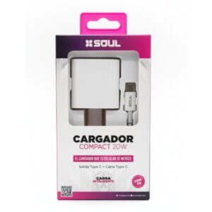 CARGADOR SOUL CARGA RAPIDA PD QC 20W + CABLE TIPO C A C CVJ-PD20WT