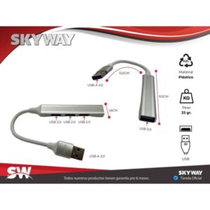HUB USB SKYWAY 4 EN 1 – 4 PUERTOS USB 3.0 Y 2.0 GM-6087