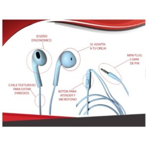 Auriculares Manos Libres con Cable 3.5 mm – Micrófono y Control de Llamadas – Blanco SKU: 1465