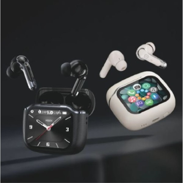 Auriculares inalámbricos Bluetooth 5.4 con pantalla táctil HD de 1.85″ integrada en el estuche.Control total desde la pantalla: música llamadas volumen cámara y modos de sonido.Cancelación activa de ruido ANC + ENC con sistema de 4 micrófonos para llamadas más claras.Drivers dinámicos de 13 mm (32 Ω) con graves potentes y sonido definido.Visualización en tiempo real de batería estado de conexión y funciones activas.Autonomía de hasta 45–6 h de uso continuo y hasta 3 recargas completas con el estuche.Carga mediante USB-C y compatibilidad con Android iOS Windows y macOS.