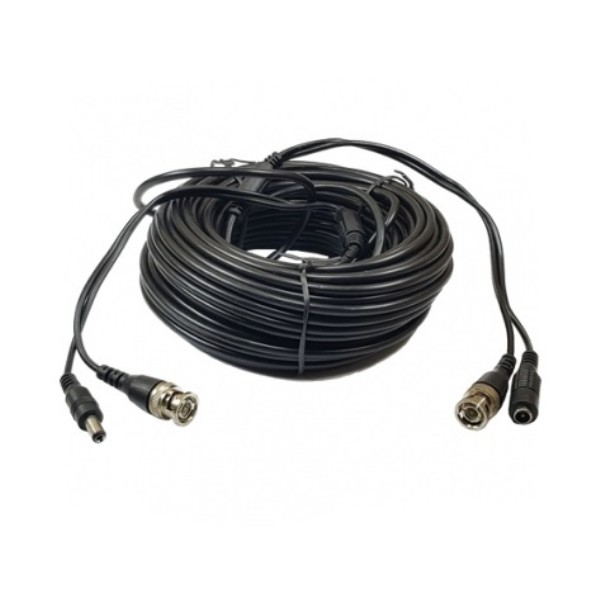 -Rollo de cable armado con Fichas BNC y Plug de alimentación macho y hembra en los extremos.-Para conectar cámaras de seguridad al DVR.-Largo: 20 mts.-Para instalaciones interiores.