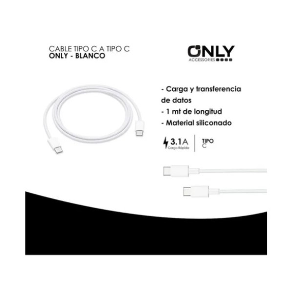 CABLE ONLY USB TIPO C a TIPO C 3.1A 1M Carga Rapida