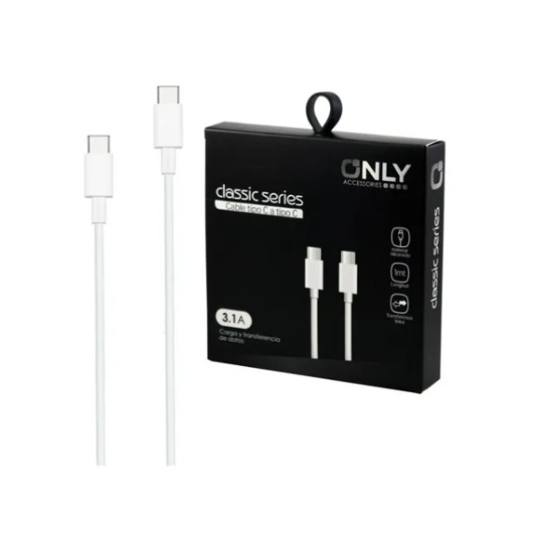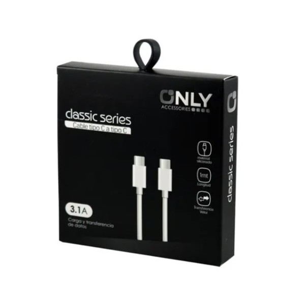 * Marca: ONLY* Modelo: Tipo C a tipo C MOD71 (classic series)* Transferencia de datos a alta velocidad* Corriente Máxima de Carga 3.1A* Compatible con Carga Rápida* Confeccionado en cable siliconado de alta calidad ultra resistente* Longitud: 1 metro* Color: Blanco* CALIDAD PREMIUM