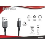 Cable Usb a TIPO C de Carga y Datos – SKYWAY Premium- Mallado con fichas metalicas- 3 amper de potencia- Soporta carga rapida.- Largo: 1 metro- Cable mallado- Color NegroLos Cables de datos metalicos Skyway combinan un material reforzado con una flexibilidad óptima para tus necesidades. Con carga rapida en tus dispositivos y transferir los datos de tu teléfono a cualquier equipo sin que se generen nudos en el cable.Verifique que su cable tenga el mismo conector al de la foto. • Producto Nuevo en Caja •