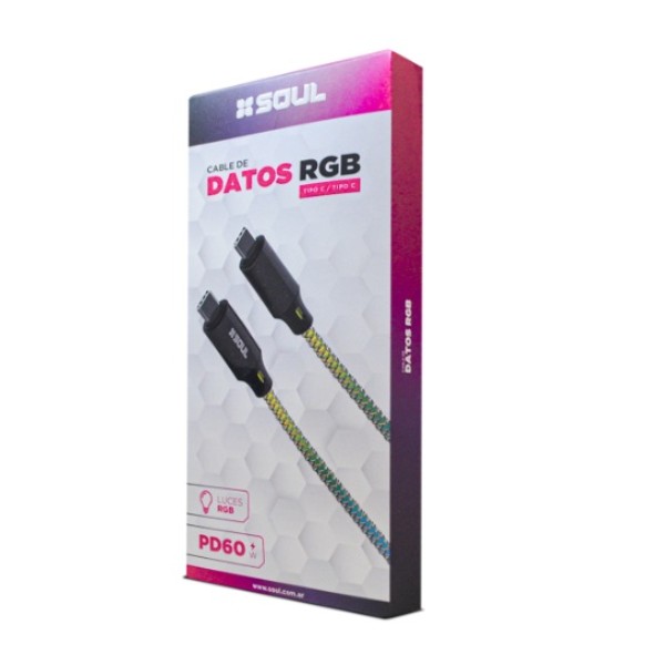 CABLE USB SOUL RGB USB C A USB C 60W 1 METRO USB-RGBPD60TT