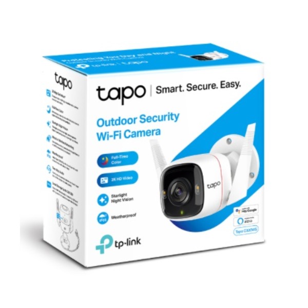Tapo C320WS Cámara Wi-Fi de seguridad para exterioresVideo de ultra-alta-definición: graba cada imagen con una definición nítida de 3MP.Conexión en red cableada o inalámbrica: conecte su cámara a la red a través de Ethernet o WiFi para una instalación más flexible.Visión nocturna avanzada: proporciona una distancia visual de hasta 30 m (98 pies) incluso en la oscuridad total.Detección de movimiento y notificaciones: le notifica cuando la cámara detecta movimiento.Alarma de luz y sonido: active los efectos de luz y sonido para ahuyentar a los visitantes no deseados.Audio bidireccional: permite la comunicación a través de un micrófono y un altavoz integrados.Almacenamiento seguro: almacena localmente hasta 128 GB de video de 3MP en una tarjeta microSD, lo que ofrece un acceso conveniente a sus secuencias de video.Control de voz: libere sus manos con control de voz: funciona con el Asistente de Google y Amazon Alexa. (Google Assistant y Amazon Alexa no están disponibles en todos los idiomas y países).