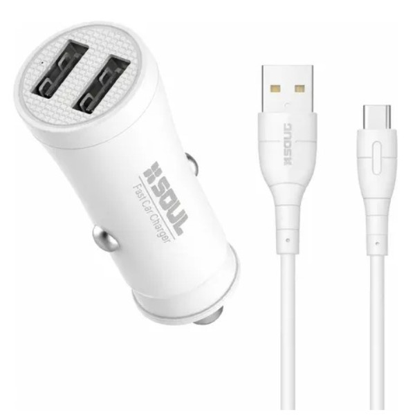 CARGADOR PARA AUTO USB SOUL 10W CON CABLE USB A C CA-DUSB10WT