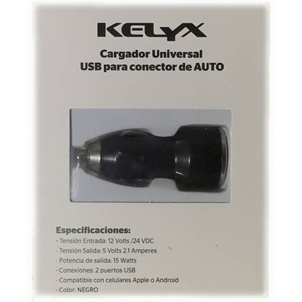 CARGADOR PARA AUTO USB KELYX 12V 2.1A NEGRO (15W)