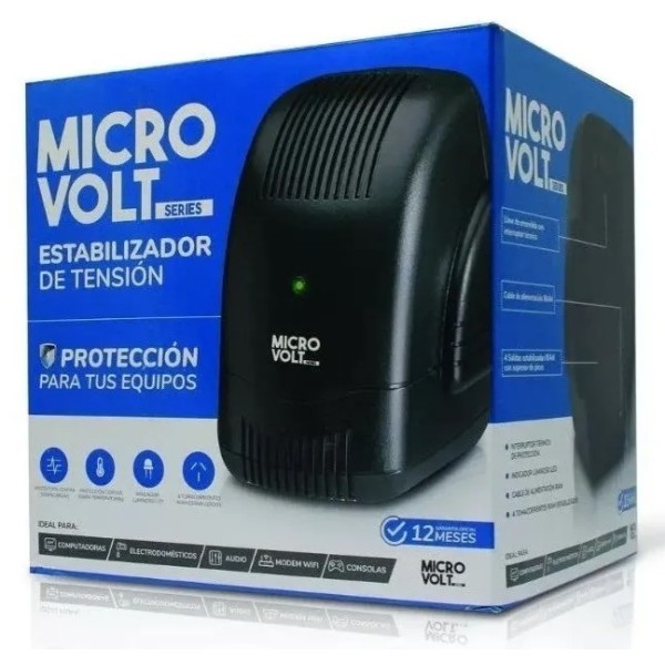DescripciónEstabilizador De Tensión Trv Microvolt 4 Tomas 1200 VA Pc Tv Smart Ps4El estabilizador MICRO VOLT fue desarrollado para la protección de equipos electrónicos, como PC de escritorio, notebook, monitores, impresoras, modems, TV LED, decodificadores de TV , consolas de juego, cajas registradoras, balanzas electrónicas y otros equipos sensibles a las variaciones de tensión.Características técnicas:Potencia pico: 1200VATensión nominal de entradasalida: 220VRango de entrada: 175-275 VFrecuencia de entradasalida: 50HzTolerancia de salida: 220 +- 10%Tomas: 4