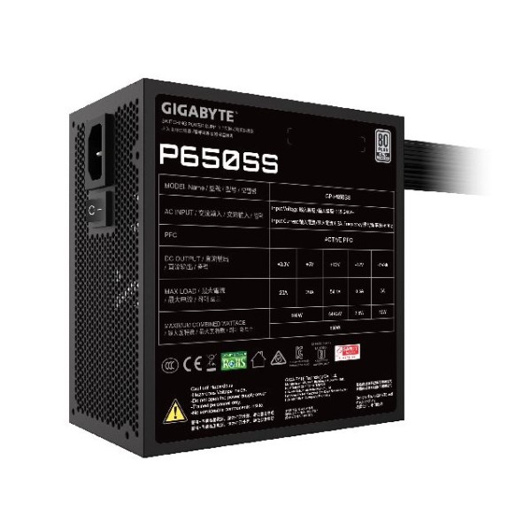 FUENTE GIGABYTE 650W GP-P650SS 80 PLUS SILVER BLACK