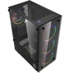 Acero:SPCCEspesor del chasis:045mmPanel frontal:GlassPanel lateral:Left side full glassPuertos:1*USB3.0+2*USB2.0 + HD AudioBahías de unidad:3.5 HDD*1 2.5 SSD*1 or 3.5 HDD*2Altura de la CPU:170mmTarjeta VGA:320mmCompatibilidad con tipos de mother:Micro ATX ATXTamaño:335*200*450mmVentilador frontal:1*120mm RGB inside ring fanVentilador trasero:3*120mm Fixed Slim ring fan