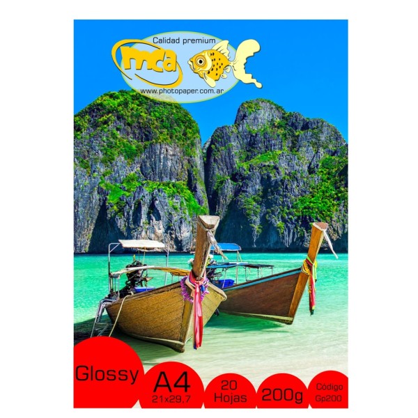 Tipo de papel: Glossy (Brillo)Gramaje: 200Marca: MCA PHOTOPAPERTamaño: A4Cantidad: 20 Hojas