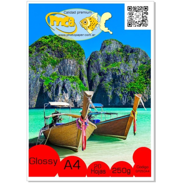 Tipo de papel: Glossy (Brillo)Gramaje: 250Marca: MCA PHOTOPAPERTamaño: A4Cantidad: 20 Hojas