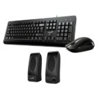 •Requisitos del sistema: Windows 7, 8, 8.1, 10 o superior y 2 puertos USB•Teclado:•Tipo de teclas: Cóncavas•Mouse:•Unidad de sensor: Óptico•Cantidad de botones: Tres (izquierda, derecha y central con desplazamiento)•Resolución (DPI): 1000•Altavoz:•Potencia total (watts): 3W•RMS (watts): 1.5 W x 2•Unidad de potencia: 50 x 90 mm•Frecuencia: 160 -20KHz•Fuente de alimentación: USB 2.0•Longitud de cable:•1.5m (Teclado)•1.5m (Mouse)•1.2m (Audio)•1.0m (Parlantes)•1.2m (Cable de alimentación)•Dimensiones (A x A x P):•Teclado: 460 x 157,5 x 27 mm (18.11 x 6.20 x 1.06 pulgadas)•Mouse: 37,8 x 100 x 58 mm (1,49 x 3,93 x 2,28 pulgadas)• Altavoz: 64x 174 x 78 mm (2,60 x 6,87 x 3,07 pulgadas)•Peso:•Teclado: Aprox. 570 g•Mouse: Aprox. 85 g•Altavoz: Aprox. 509,2 g