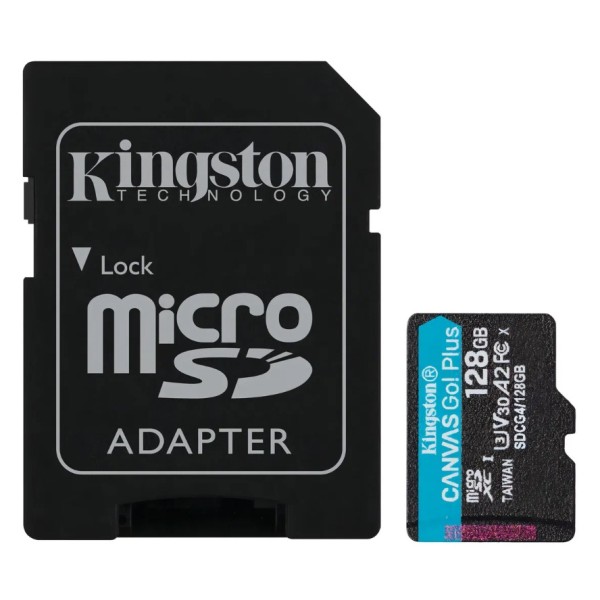 MEMORIA MICRO SD KINGSTON 128GB cAdap Canvas GO Plus Gen4 200 mbps(4K Camara-Drones)