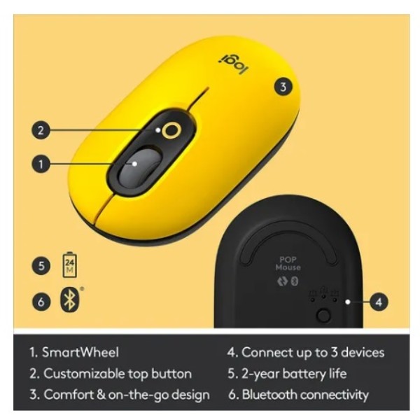 MOUSE LOGITECH Wireless POP AMARILLO Y NEGRO