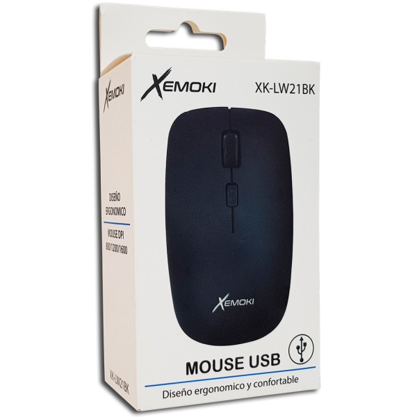 MOUSE NEGRO USB XEMOKI XK-LW21BK