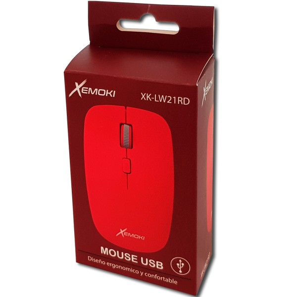 MOUSE ROJO USB XEMOKI XK-LW21RD