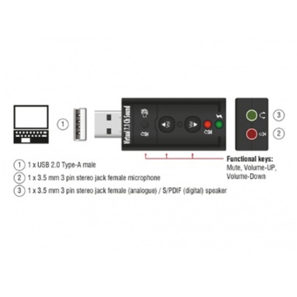 Características y especificacionesSkyWay Adaptador USB a audio 7.1 y microfono control volumen C06 GM-3479La mejor manera a tener sonido de 7.1 channel en tu portátil & PC por puerto USB. El adaptador de Sonido USB 7.1 expande su ordenador permitiendo una Tarjeta de Sonido adicional. no se necesita drivers simplemente enchufe el adaptador a un puerto USBlibre de su portátil o PC y conecte en él sus auriculares o altavoz o microfono.Especificación técnica• Conectores (35mm):1 Micrófono 1 Altavoz• Botones de Función: Subir Volumen Bajar Volumen Silencio de micrófono Silencio de auricular.• Clase USB HID 1.1• Compatible con Sonido de canal 7.1 virtual Xear 3D• LED indicador de estado de Microfono.• Soporta Windows 98SEME2000XP2003Vista Linux Mac OS.