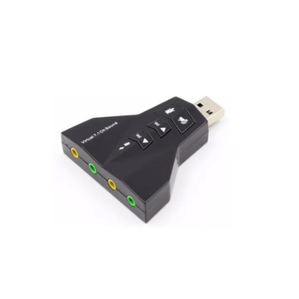 PLACA DE SONIDO USB EXTERNA 7.1CON DOBLE POSIBILIDAD DETRANSMISION, DOBLE ENTRADA YDOBLE SALIDA.CONECTA HASTA DOS AURICULARES YDOS MICROFONOS EN SIMULTANEO.- Apta Virtual DJ- Diseñada con software Xear 3D Sound simulation.- Placa Potenciadora o de Reemplazo para tu PC, Notebook o Netbook.- Super Fácil Instalación- Solo debe conectarlo a un puerto USB y Windows lo instalará automaticamente- Plug & Play, no necesita Drivers- Doble entrada de Micrófono- Doble Conector de salida de audio (3.5 mm)- Compatible con USB 2.0 full-speed (12Mbps)- Compatible con Dispositivos de Audio USB especificación 1.0- Controladores de Navegacion: microfono-mute, headset-mute, Control de volumen- Indicadores LEDCARACTERISTICAS:* COLOR: Negro* MATERIAL: Plastico* soporta: Windows 98SE ME2000 XPServer 2003Vista Linux. Mac05 10 o superior • Producto Nuevo en Caja Blister •
