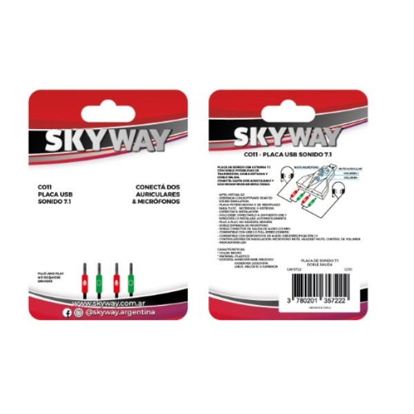 PLACA DE SONIDO TIPO PEN DRIVE SKYWAY DOBLE SALIDA 7.1 C011