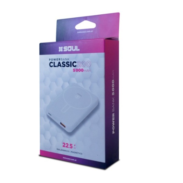 POWER BANK SOUL CLASSIC200 INALAMBRICO + MAGNETICO CON CABLE USB C 5000MAH CARGA RAPIDA 22.5W (SALIDA USB + C)