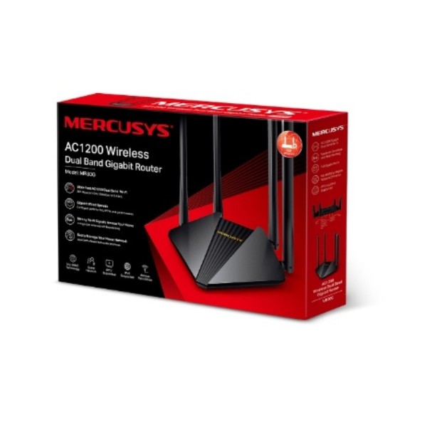 MR30GAC1200 Wireless Dual Band Gigabit RouterAC1200 Gigabit WiFi – Enjoy home entertainment without any lag, reaching speeds up to 1.2 Gbps (867 Mbps on the 5 GHz band and 300 Mbps on the 2.4 GHz band)Broader Coverage – 4× high-gain antennas with Beamforming boost stable connections throughout your home for strong WiFi signals in every cornerFull Gigabit Ports – Make full use of your internet access and transfer data at dizzying speeds for peak performanceHigher Network Efficiency – MU-MIMO technology allows MR30G to communicate with multiple devices at the same time, increasing WiFi throughput for each deviceEasily Manage Your Home Network – Varied software functions such as Parental Controls, QoS, and Guest Network for safety and effectivenessIPTV Supported – Supports IGMP ProxySnooping, Bridge, and Tag VLAN to optimize IPTV streamingIPv6 Supported – Allows you to both enjoy the IPv6 services provided by your ISP and visit IPv6 websites