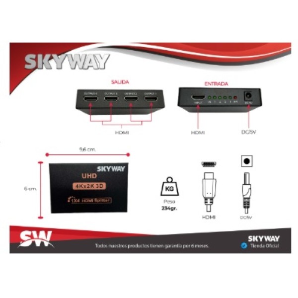 SPLITTER HDMI 1X4 SKYWAY SPLT2 4K GM-3476