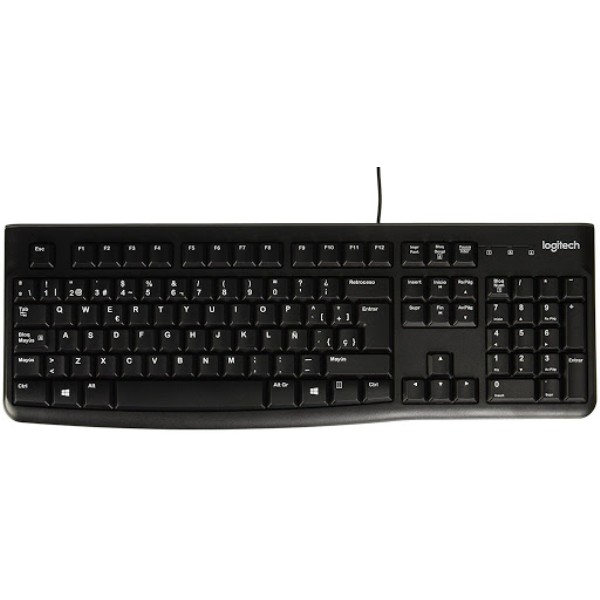 Logitech K120 – Teclado (PCMac, USB)Un teclado USB que permite escribir cómodamente, durante mucho tiempo.-Escritura cómoda: Disfrutará de teclas planas que apenas hacen ruido y un diseño estándar con teclas F y teclado numérico de tamaño normal.-Atractivo y robusto: El teclado no es sólo elegante: es resistente, con un diseño resistente a salpicaduras*, sólidas patas ajustables y teclas duraderas.-Así de simple: Basta con conectarlo al puerto USB de la computadora, portátil o netbook, y ya se puede empezar a usar.Con teclas planas, un diseño estándar y un diseño elegante y a la vez resistente, este teclado USB permite permite escribir con mayor comodidad, durante mucho tiempo.