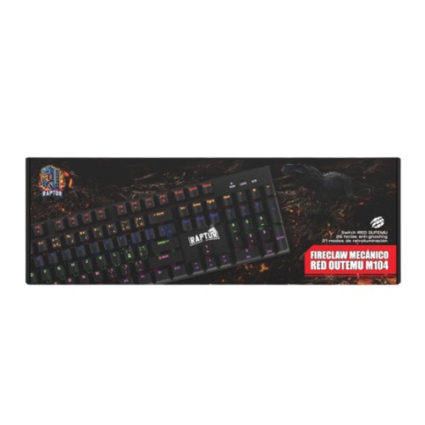 TECLADO RAPTOR FIRECLAW M104 MECANICO RETROILUMINADO SWITCH RED OUTEMU %100