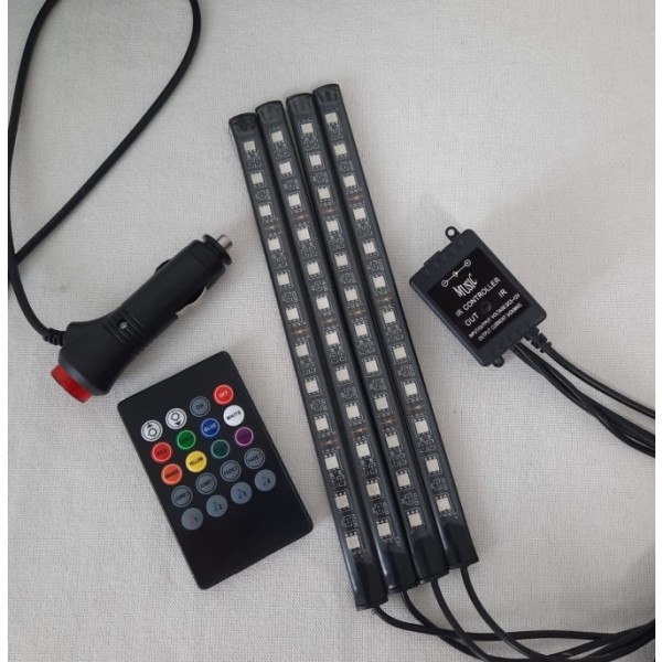TIRA LED PARA AUTO – 4 TIRAS 50X50 – 8 COLORES, 4 EFECTOS Y 4 ILUMINACION AUDIORITMICA – ENCHUFE PARA ENCENDEDOR DEL AUTO – ADESIVAS CON CONTROL