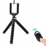 Trípode flexible con disparador bluetooth.-Altura: 18 cm-Disparador bluetooth-Cabezal soporte de celular