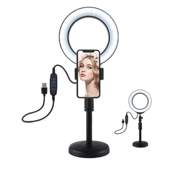 ARO DE LUZ LED SELFIE3 IntensidadesSKYWAYAro de luz Led ideal para realizar live streaming, fotos, maquillaje.El producto viene con 3 iluminacion profesional(Luz Fria, Luz Intermedia,Luz Calida) y tambien se permite controlar la intensidad de la luz hasta 10 nievelesARO LUZ LED 46 LEDS CON CONTROL REMOTO PARA SELFIE, STREAMING, SET FOTOGRÁFICO, ETC• 3 modos de color y 10 niveles de brillo: tres modos de brillo: blanco, blanco cálido, luz cálida, cada modo tiene 10 niveles de brillo que se pueden ajustar del 1% al 100% para satisfacer sus diferentes necesidades de iluminación. Ideal para transmisión, luz fotográfica, autofoto de teléfono inteligente, grabación de video ,etc. También se puede usar como lámpara de escritorio para leer o maquillarse. La luz del anillo hecha de 46 bombillas LED y ABS de alta calidad• Control remoto Bluetooth: viene con un control remoto Bluetooth, por lo que ni siquiera necesita tocar su teléfono celular para iniciar un video o una selfie. Es ampliamente compatible con la mayoría de los teléfonos inteligentes iPhone y Android.• SOPORTE UNIVERSAL: Hecho de carbono cero, tubo de rosca de metal y ABS, con excelente resistencia. Diseño giratorio 2 en 1 de 360 grados, combina soporte de cuello de cisne de metal para teléfono celular y soporte de luz de anillo, ahorra espacio en tu escritorio y se pliega fácilmente. Es adecuado para casi todos los teléfonos inteligentes ( VER IMAGEN CON APERTURA DEL ADAPTADOR PARA CELULAR) . Es fácil de transportar y su sólida capacidad de bloqueo puede mantener• Alimentado por USB: los puertos USB se pueden usar con múltiples dispositivos, como la conexión de una computadora portátil, computadora, fuente de alimentación, cargador USB, adaptador de CA, etc. Puede disfrutar de la luz del anillo LED en cualquier momento libremente.Altura total: 30 CMDiametro de Aro: 16cmCantidad de LEDs: 46Ajustable color temperatura: 3000-5800KPotencia: 8WProducto Nuevo en Caja.