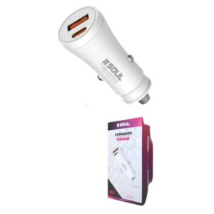 CARGADOR PARA AUTO USB SOUL PD+QC 38W CON CABLE C A LIGHTNING BLANCO CA-DPD38WL