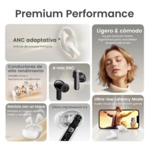 AURICULAR EARDBUDS NOAX ZEN BLANCO – (CON CANCELACION ACTIVA DE RUIDO)