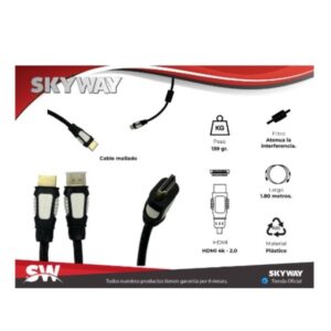 CABLE HDMI A HDMI 4K 3D MALLADO 1.8M SKYWAY 3389